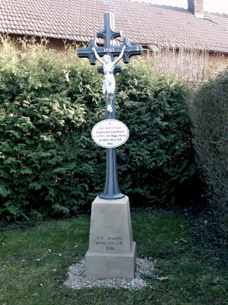 Od Dohalického lva se všichni přesunuli do nedaleké osady Kopaniny a prohlédli si kříž setníka Arthura Leonhardiho, velitele 10. setniny 3. pomořanského pěšího pluku č. 14, který zemřel po zásahu střepinou granátu do hlavy v boji o obec Dohaličky, stojící od roku 1929 v Kopaninách v místech, kde v letech 1905–1929 stávala dnes již zaniklá kaple sv. Jiří. Také tento kříž byl v loňském roce opraven, tentokrát péčí Radka Balcárka a M. Suchého, přičemž byla na kříž osazena replika původní plechové tabulky z roku 1866. Prostředky na opravu byly poskytnuty obcí Dohalice a Komitétem 1866. Také tuto památku požehnal farář M. Benko a M. Suchý položil k patě kříže kytici. Na závěr zaznělo poděkování všem, kdo se podílejí na opravách památek na bojištích s války roku 1866.