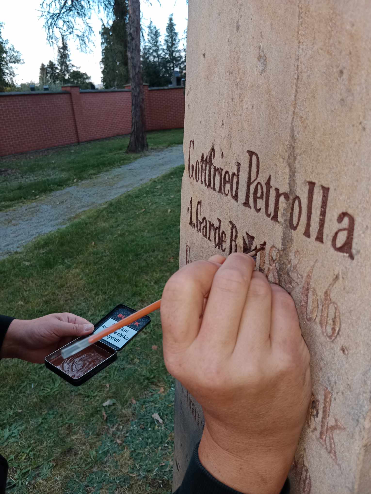Pánové M. Suchý, R. Balcárek, L. Petr a M. Deml provedli několik brigád na vojenském hřbitově v Hradci Králové na Pouchově. Jednalo se o umytí a očištění pomníků ev. č. 284, 285 a 286. U pomníku ev. č. 285 byl nalepen uvolněný vrcholový kříž a u všech třech památek bude v několika následujících dnech zvýrazněno písmo.