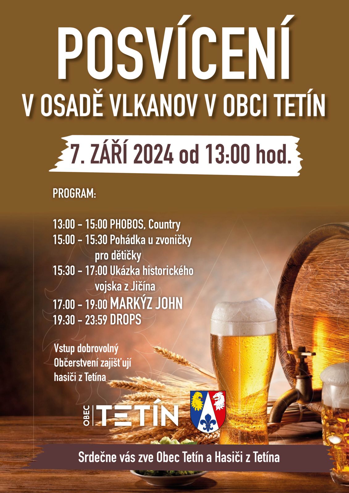 Vstup dobrovolný, Občerstvení zajišťují hasiči z Tetína.