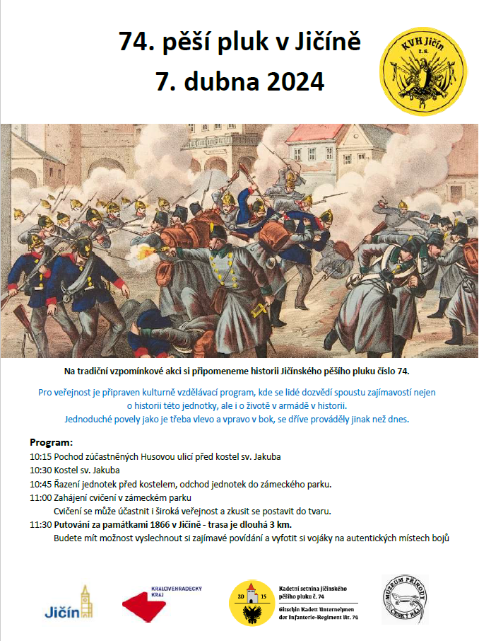 Na tradiční vzpomínkové akci si připomeneme historii Jičínského pěšího pluku číslo 74.