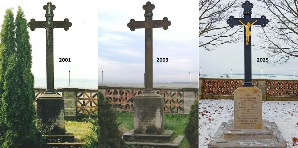 Po téměř 25 letech bude na velkém kříži Pruského hřbitova na Chlumu odhalena a požehnána nová plastika Ježíše Krista. Původní litinová plastika byla natolik zkorodovaná, že se z kříže uvolnila, spadla a polámala. Zdegradované tělo sošky bylo použito k zaformování, doplněny chybějící části a Kristus znovu odlit. Práce provedla firma Kovářství Lípa a zafinancoval Královéhradecký kraj.