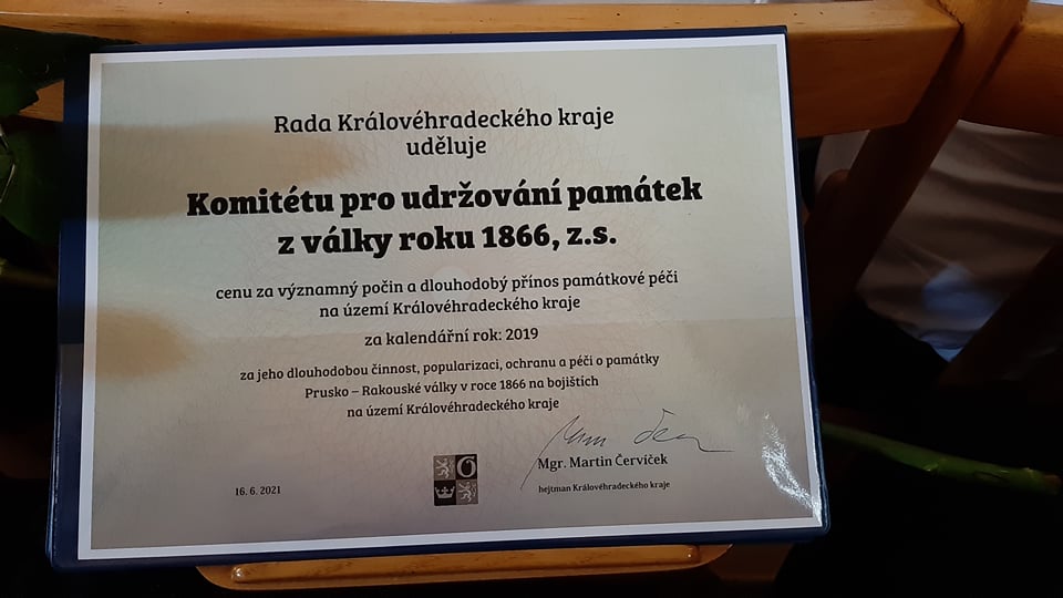 Dne 16.6. 2021 převzal předseda spolku ocenění Rady Královéhradeckého kraje za dlouhodobý počin a významný přínos památkové péči na území Královéhradeckého kraje.