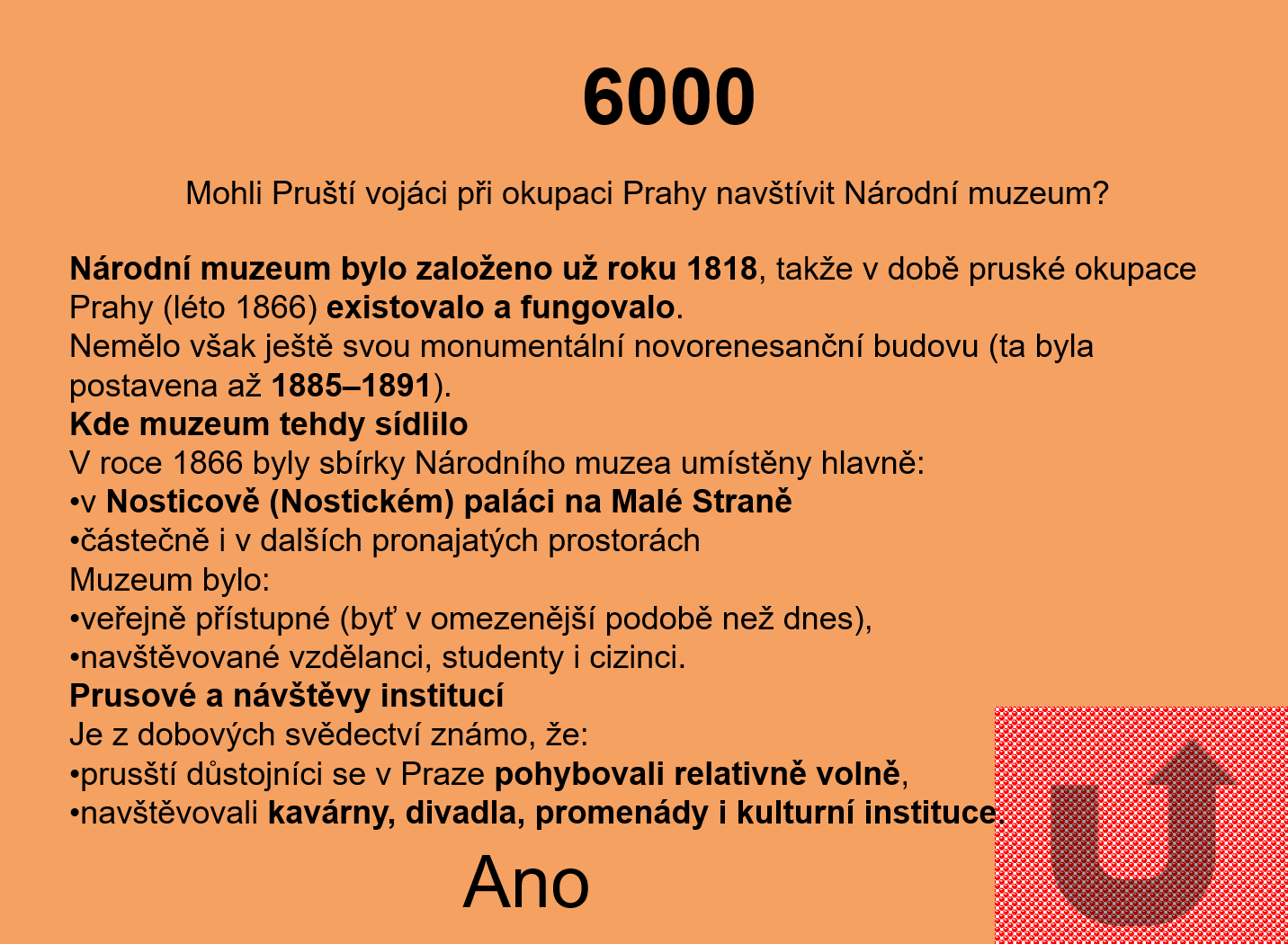 Hráče zaujala třeba informace, že Prusové při okupaci Prahy v roce 1866 mohli navštívit Národní muzeum, nebo informace jak byly z Čech odvezeny korunovační klenoty.