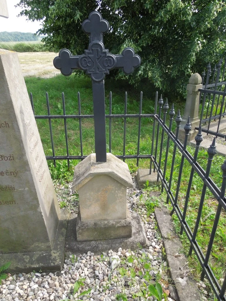 Kříž ulomen. Litinové oploc.. V souboru čtyř pomníků.