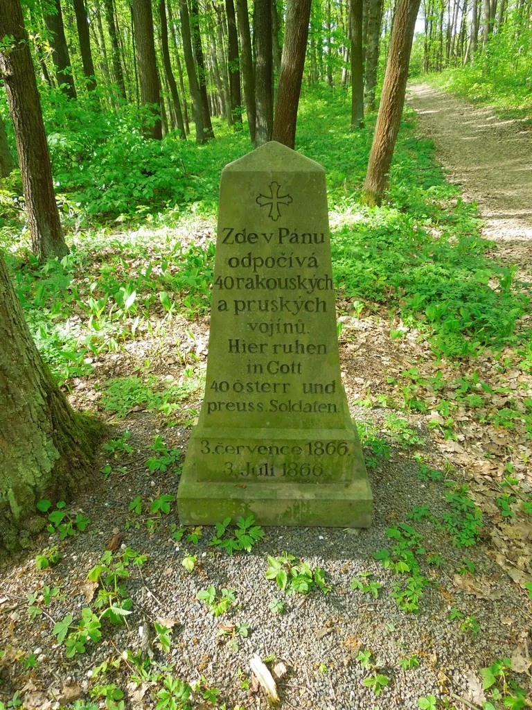 | Text na památce: | Čelní strana: \ Zde v Pánu odpočívá 40 rakouských a pruských vojínů. Hier ruhen in Gott 40 österr. und preuss. Soldaten. \ 3. července 1866. 3. juli 1866. \ Levá strana: \ Renov. (Kom.) 1889. Č. 148. \ |