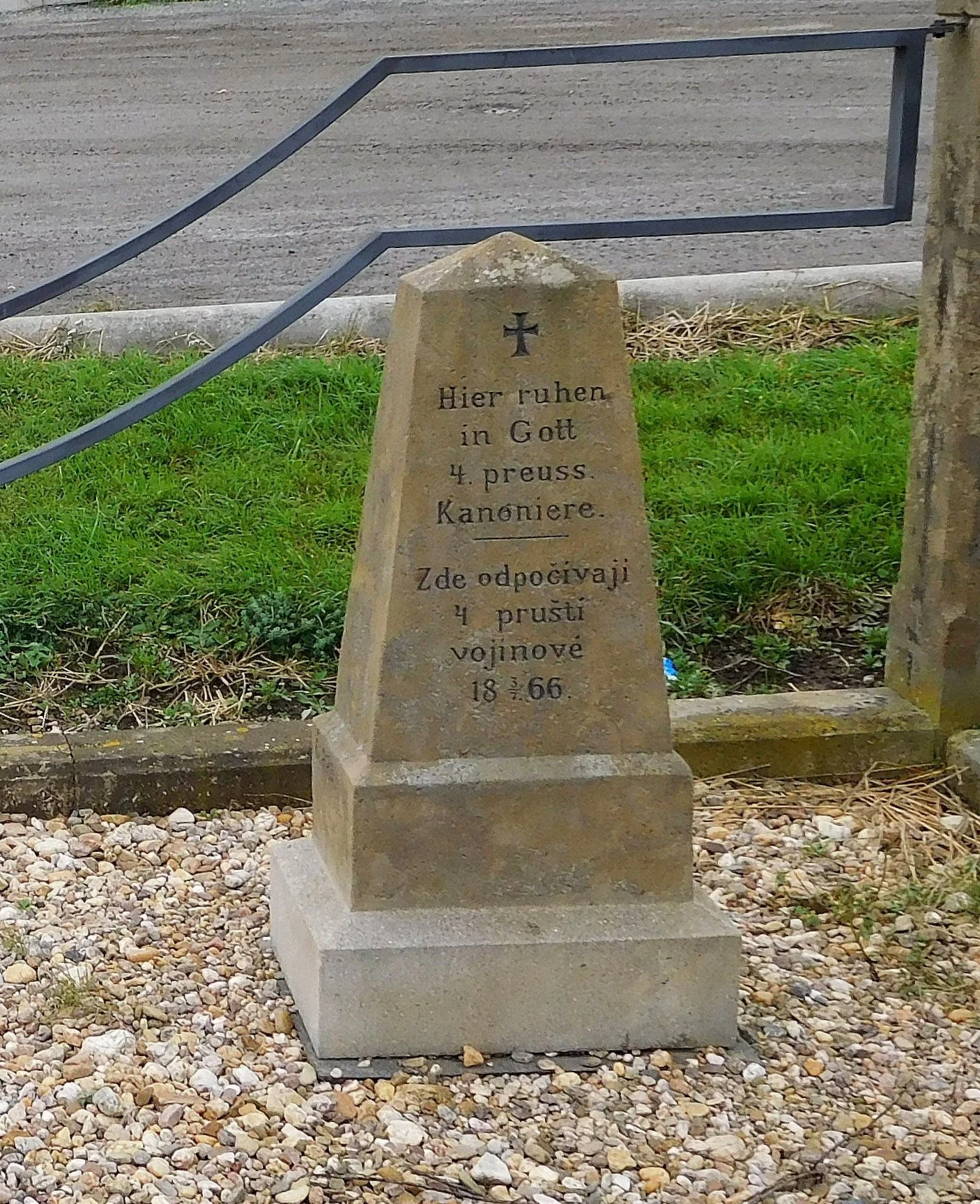| Text na památce: | Čelní strana:\ Hier ruhen in Gott 4. preuss. Kanoniere. Zde odpočívají 4 pruští vojínové. 18 3./7. 66. \ Levá strana: \ Č. 229. \ |