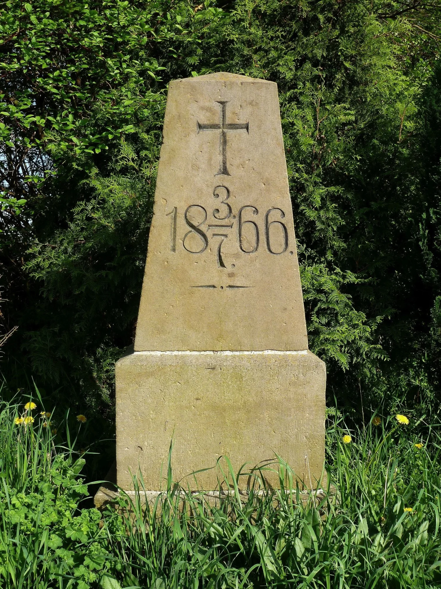 | Popis památky: | Pískovcová typová pyramida s datem bitvy |