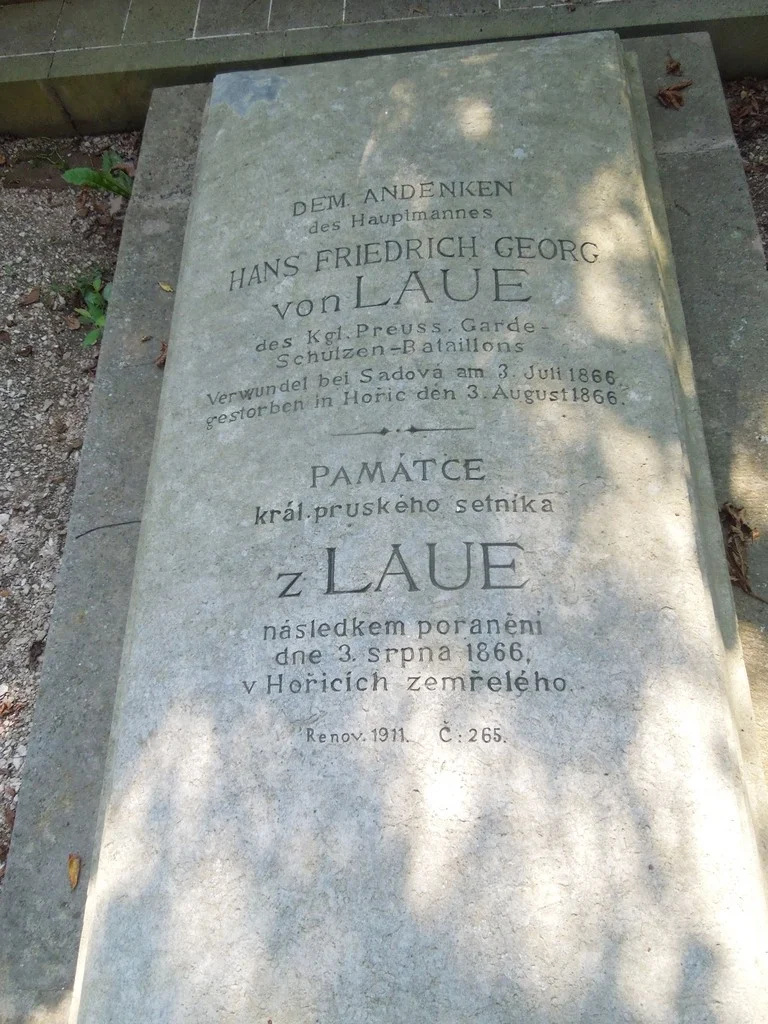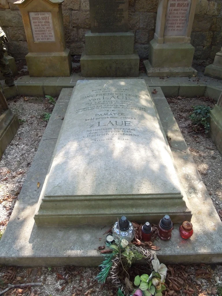 Pruský setník Hans Friedrich Georg von Laue, hřbitov, Hořice
