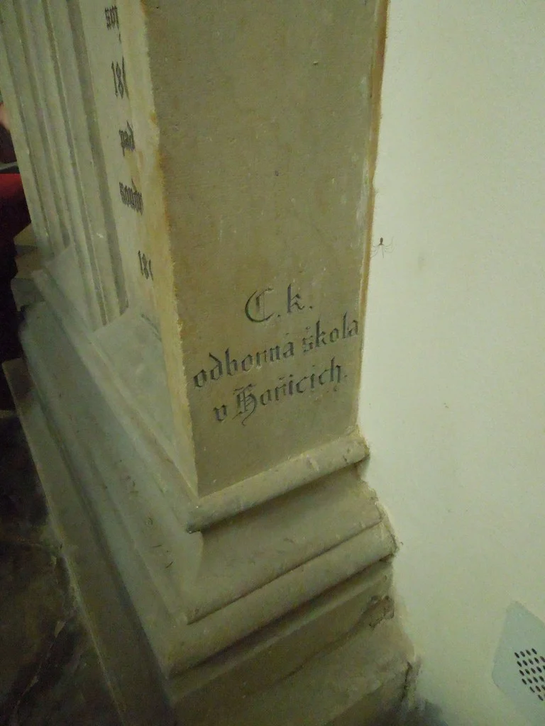 | Další informace: | Návrhl učitel hořické školy Boh. Moravec, slohově upravil vídeňský architekt, stavební rada Friedrich von Schmidt, zhotovila hořická škola. Dolní dělená nápisní plocha š70, v105 cm, horní nápisní plocha š54, v 80 cm. |