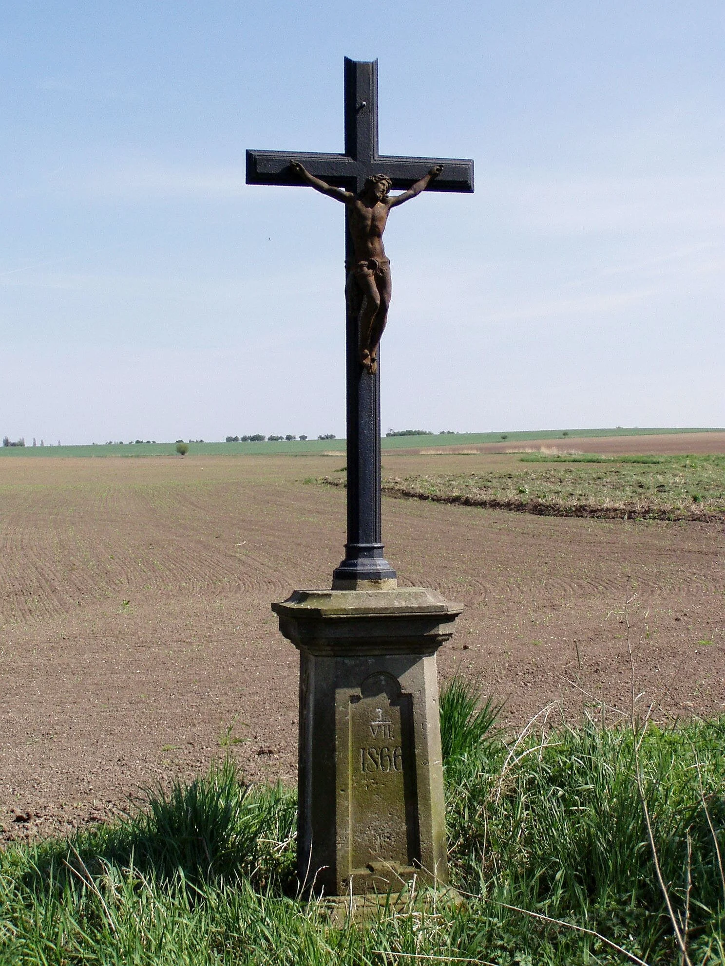 Pískovcový hranol s římsou na několika stupňovém soklu. Na hranolu je nasazen vysoký litinový kříž s plastikou Krista, typ č. 298.
