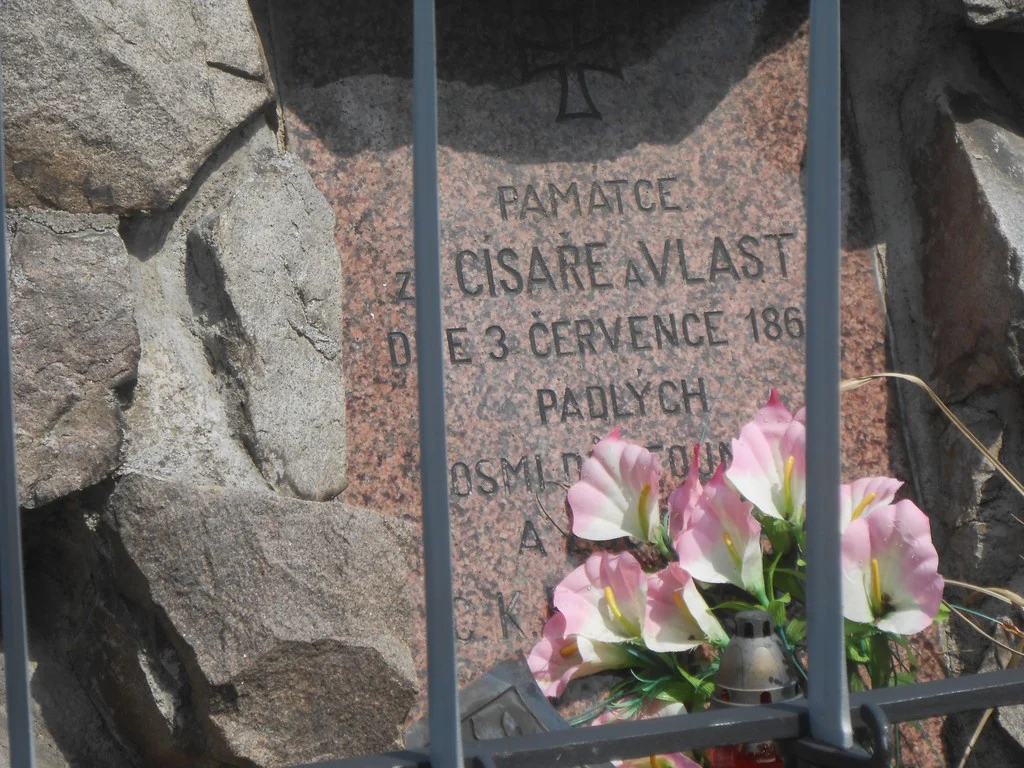 Památka bez ostatků padlých a zemřelých vojáků, která stojí na původním místě; na památce je informace o pohřbených