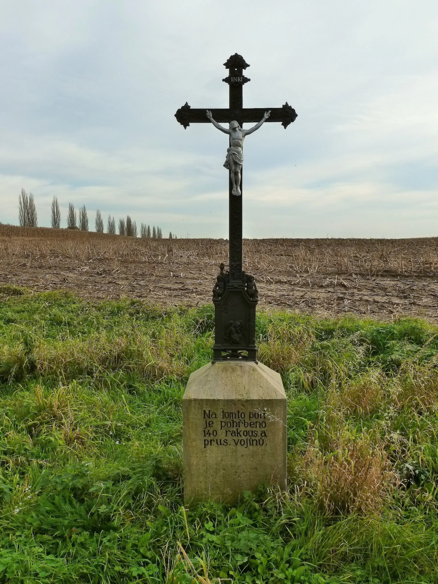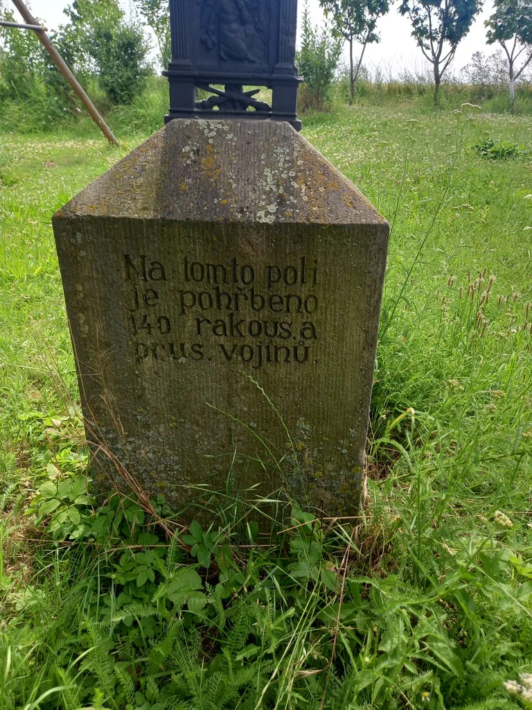 | Text na památce: | Čelní strana: \ Na tomto poli je pohřbeno 140 rakous. a prus. vojínů. \ |