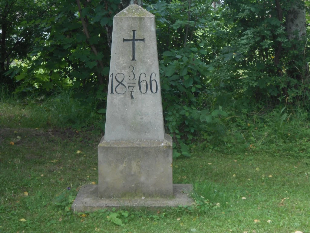 | Popis památky: | Pískovcová typová pyramida s datem bitvy |