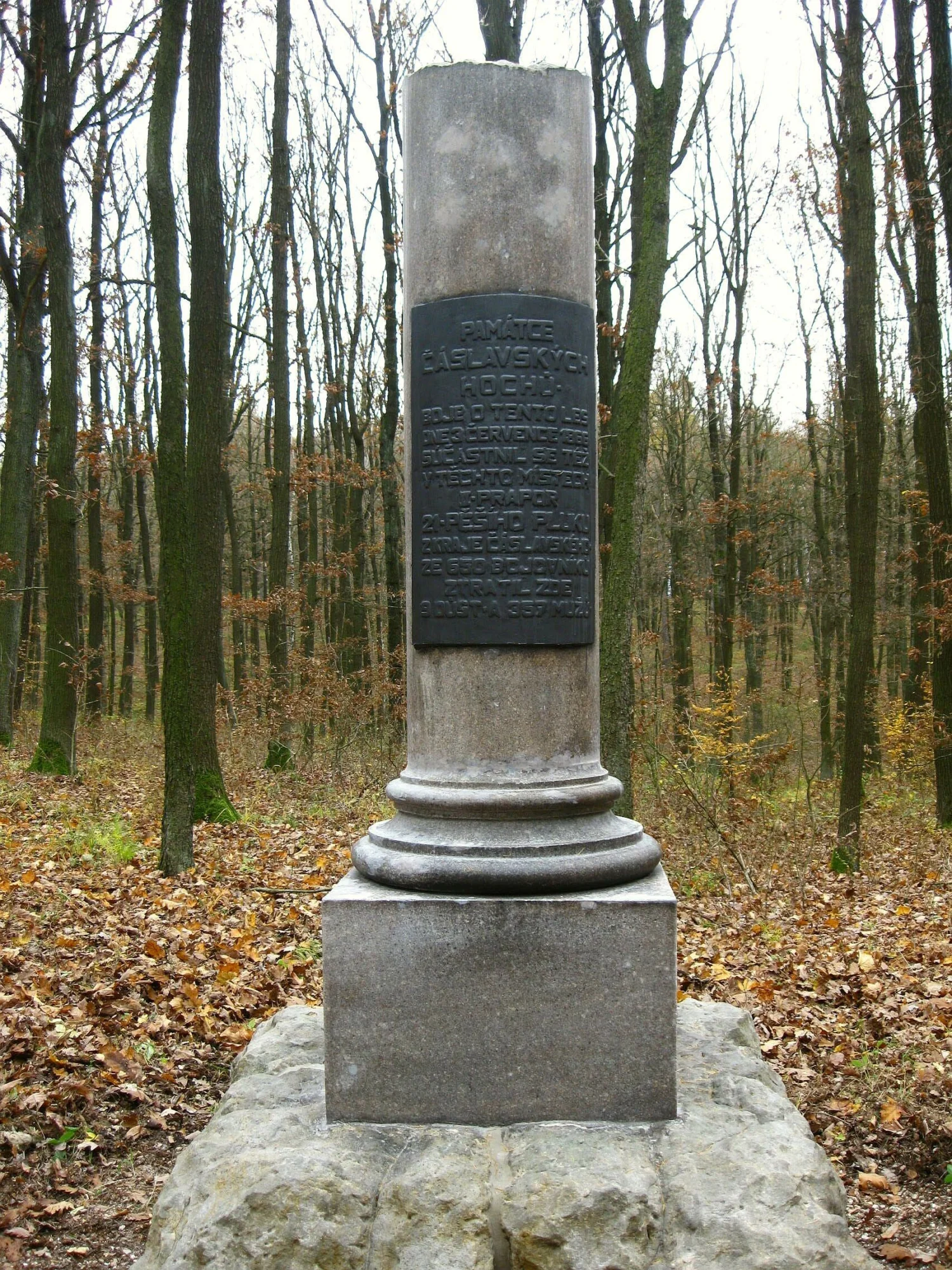 | Popis památky: | Mramorový sloup na pískovcovém hranolu a skalce. Měděná nápisní deska v českém jazyce a měděný věnec s č.21. |
