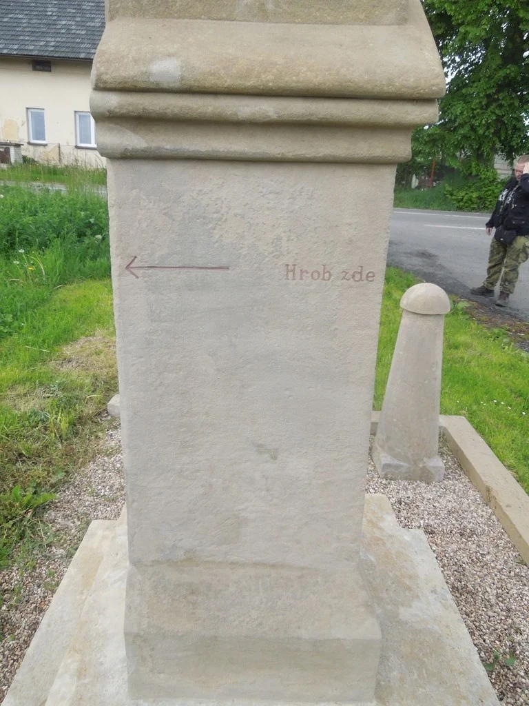 | Popis památky: | Pískovcový hranol na dvojitém soklu s kamenným křížem z téhož materiálu, s nápisy v českém a německém jazyce |