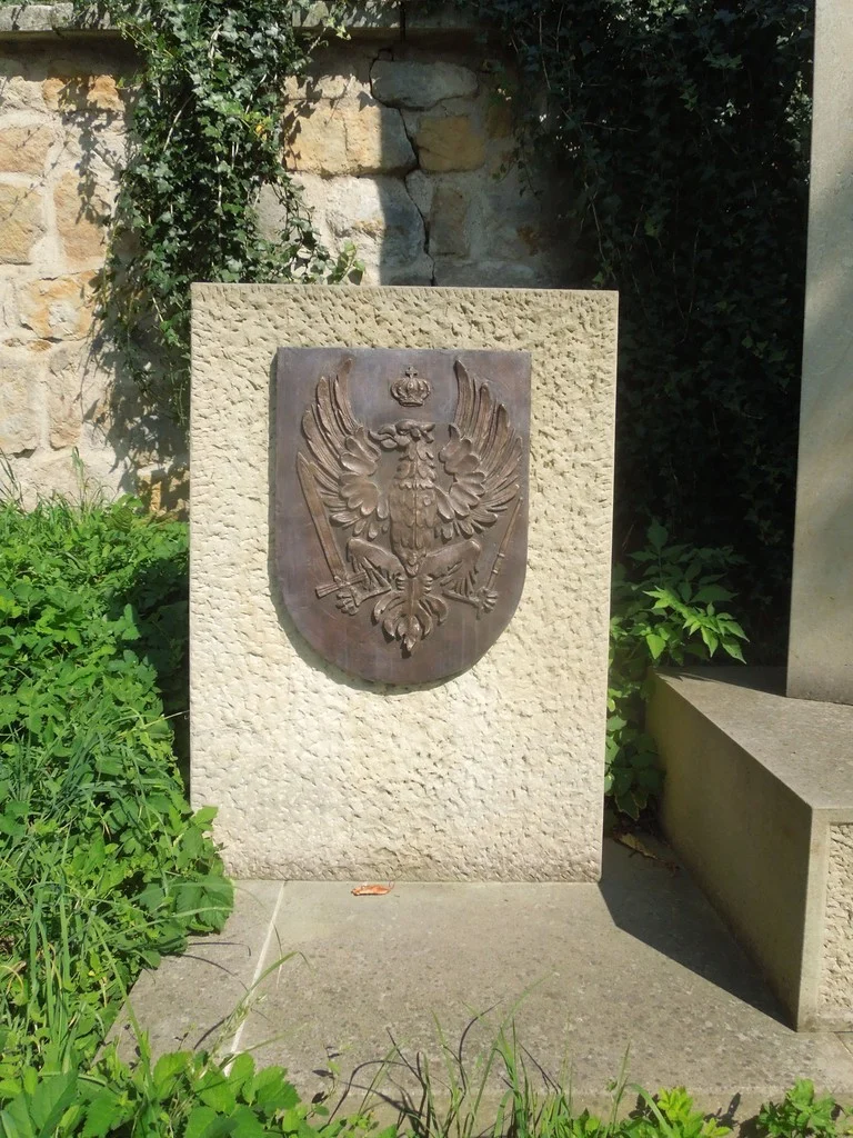 | Popis památky: | Pískovcová stéla z průzory na soklu, po stranách desky s bronzovými reliéfy. Vlevo pruská orlice, vpravo rakouský orel. |