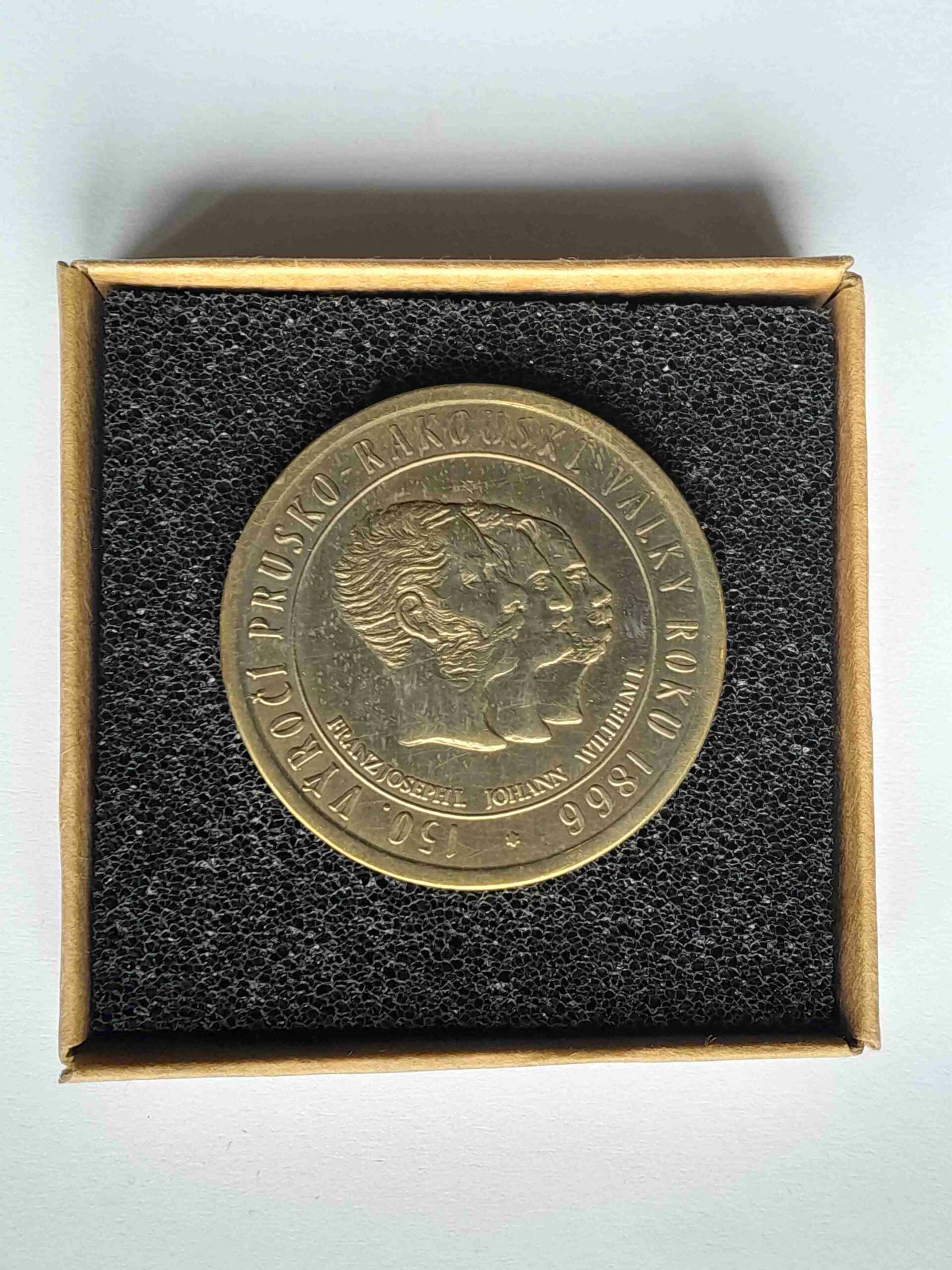 Plaketa ke 150. výročí prusko-rakouské války r. 1866 v mosazné variantě, kterou vydal Komitét pro udržování památek k z války roku 1866. Zobrazuje na líci rakouského císaře Františka Josefa I., pruského krále Viléma I. a saského krále Jana, na rubu pak logo vydavatele plakety. Plaketa je distribuována v kartonové krabičce.