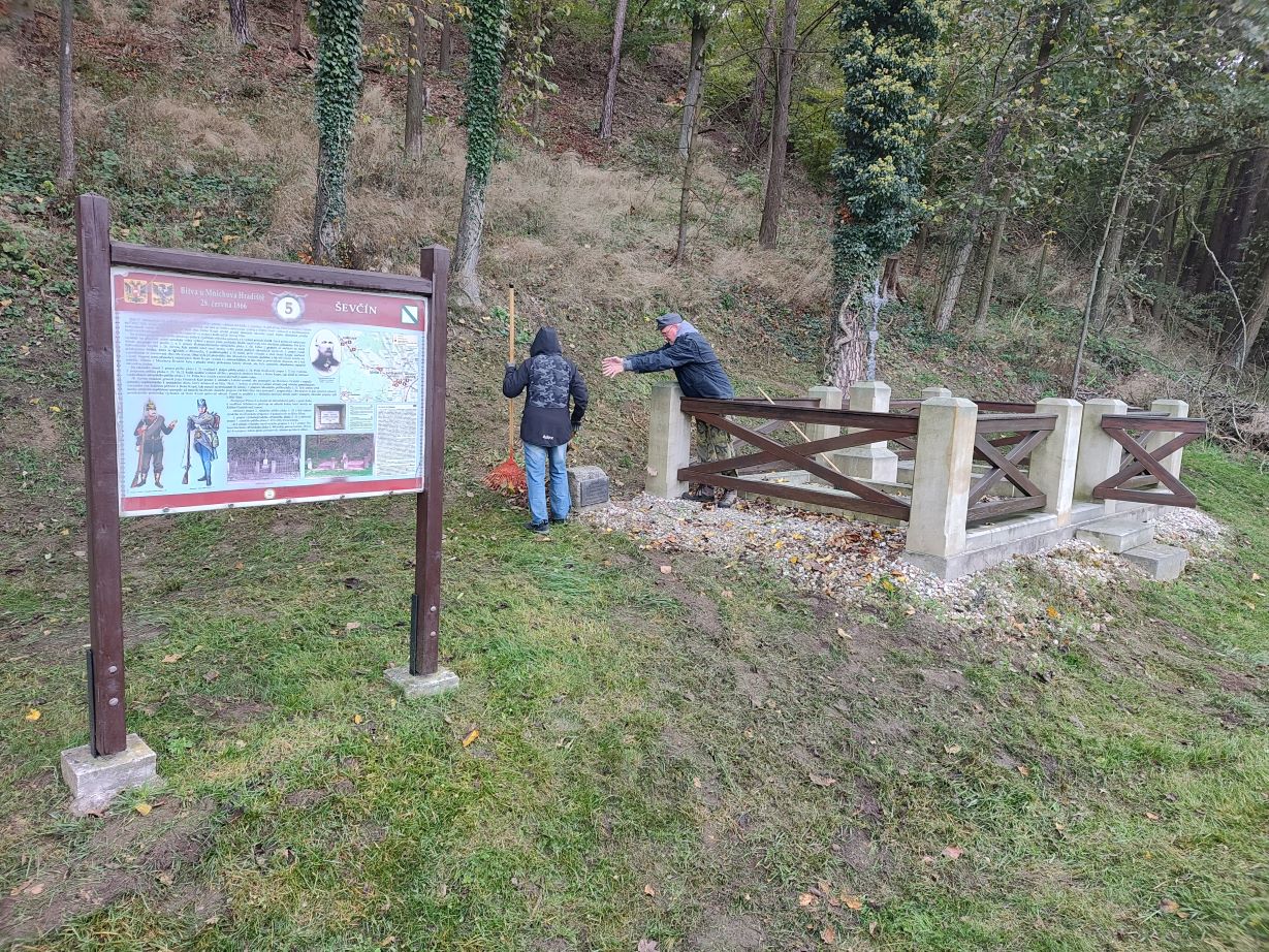V sobotu 12. října 2024 proběhlo podzimní sekání trávy na celé ploše mnichovohradišťského bojiště. Brigády se zúčastnil J. Náhlovský, P. Megela, P. Grulichová, J. Třešňák, M. Janoušek a M. Šmejkal s manželkou. Nejdříve se všichni společně zaměřili na pomník ev. č. 32 v Klášteře Hradišti nad Jizerou. Následně vznikly dvě samostatně pracující skupiny. První v čele s J. Třešňákem a ve složení M. Janoušek s manželi Šmejkalovými se většinou soustředila na lokality s rozsáhlejší travnatou plochou s pomníky ev. č. 10 – 20, 43, 44, 45 a 52. Značným a trvalým nasazením stihl samostatně J. Třešňák zvelebit ještě pomníky ev. č. 21, 26, 27, 42, 46, 51 a 55, což uskutečnil v rámci svých přejezdů po bojišti. Okolí pomníků ev. č. 35, 41 a 47 upravil M. Janoušek s manžely Šmejkalovými. Druhá skupina ve složení J. Náhlovský, P. Megela a P. Grulichová posekala během brigádních hodin trávu u pomníků ev. č. 1 – 7, 9, 33 a 34.