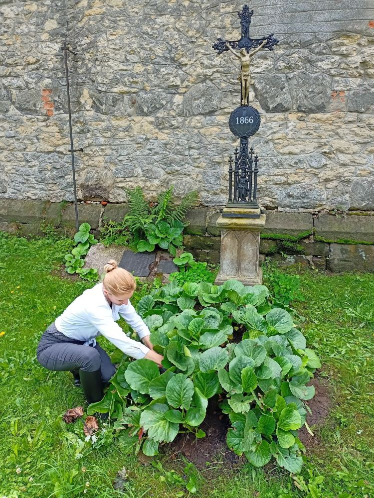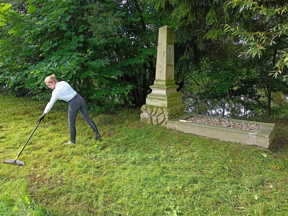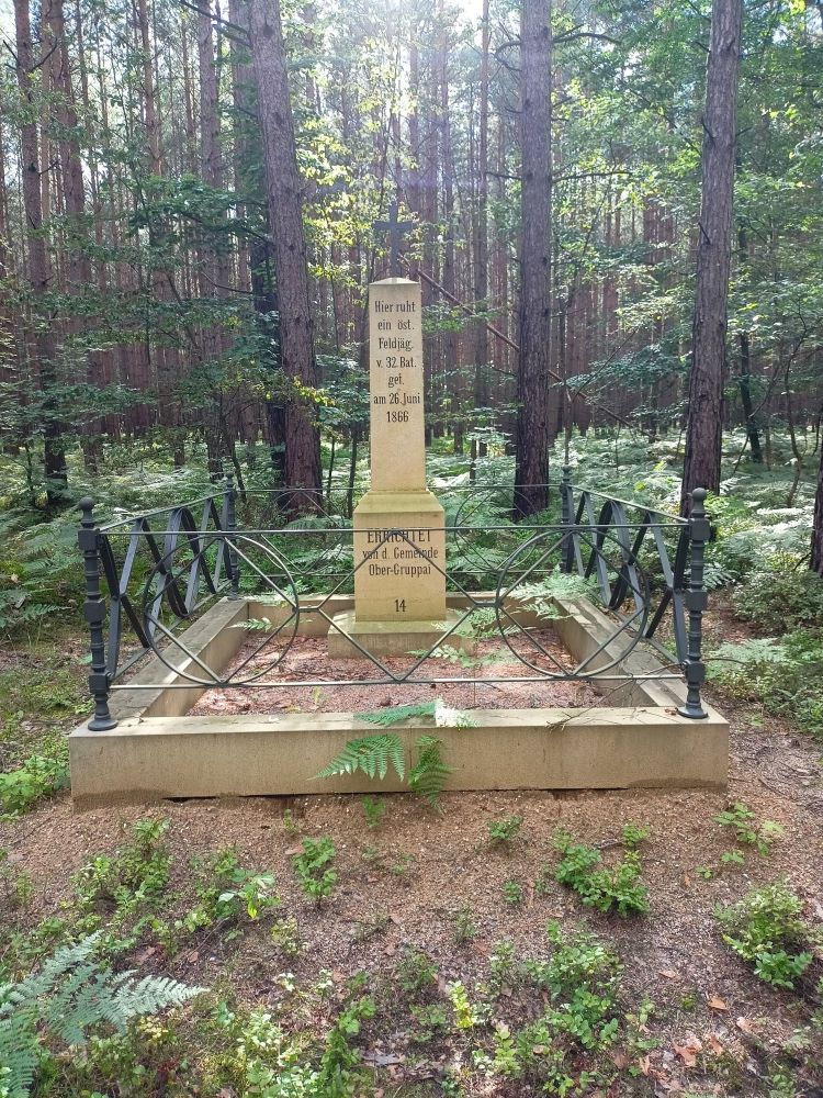 V Březině u pomníku ev. č. 53 došlo k očištění kříže a k odstranění suchých částí květin. U zdejšího stojanu informačního panelu k roku 1866 byla posekána vegetace, která již obrůstala jeho kotvící prvky. Nejnáročnější prací celého dne se stala úprava okolí pomníků ev. č. 33 a 34 v těžko přístupném terénu na bojišti u Mnichova Hradiště. U pomníku ev. č. 33 se jednalo o první letošní sekání vzrostlé a husté trávy. Horší situace nastala u druhé památky, zarostlé v porostu vysokých a propletených kopřiv, která zcela prověřila technické schopnosti používaného křovinořezu. Z obrubníků obou těchto pomníků byly mechanicky odstraněny nánosy mechového povlaku. Brigádní čas na tomto bojišti zakončila úprava okolí pomníků ev. č. 28 – 31.